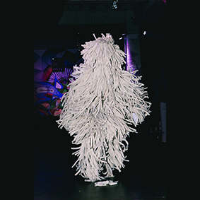 The majority of my performance work involves masking and costume. The Bait Fridge pty ltd solidified this practice and it bled into my other work. Working with recycled materials, virtual media and a variety of tools, I stitch together costumes and wearable artwork to augment and give face to performances and more.
